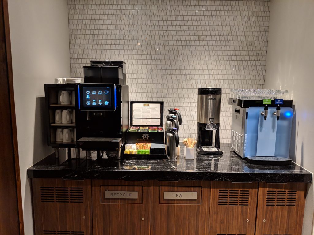 The lounge is fairly large, weighing in at 12,500 square feet after the renovations. American Express has used the space creatively, turning what is essentially a long, wide hallway, into a lounge with ample room for seating, showers, conference space, buffet, and bar. The only time it really feels cramped is passing by each other in the narrow walkways, otherwise the Centurion lounge is spacious! Well, it ws at 6AM at least…