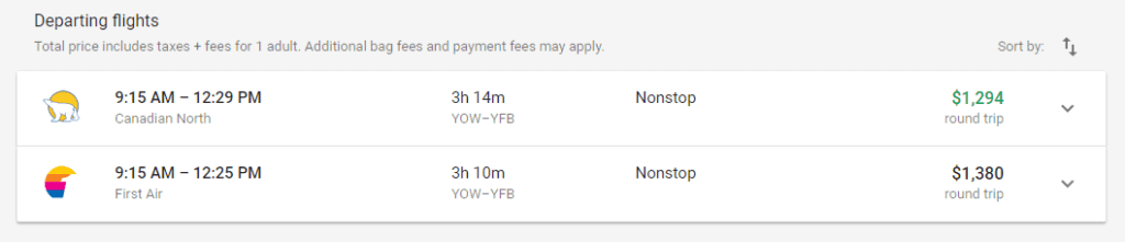 For example, if you want to fly from Ottawa to Iqaluit, Nunavut, you’ll have to shell out $1,000 or more. Interested in visiting Resolute? The current sticker price is $5,500. Planning a visit to the Arctic won’t come cheap.