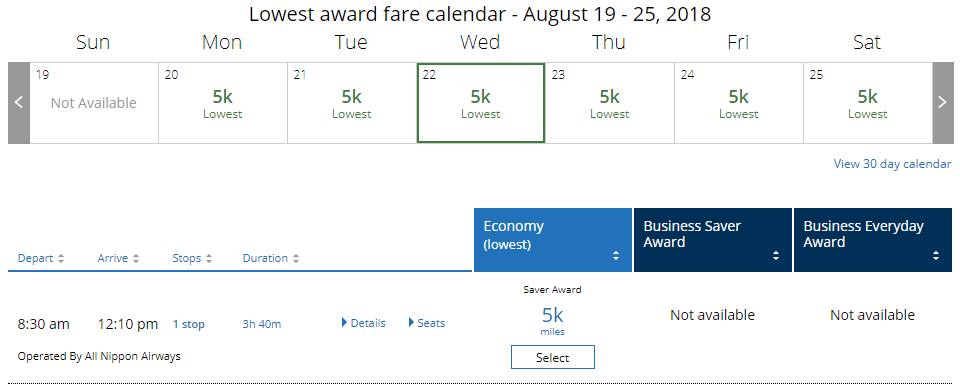 Cash fare? Typically $150 one-way. Easy 3 cents per mile here. If you are planning a multi-city itinerary in Japan, United miles are the way to go. Also notice the complete lack of taxes or fees. This is truly a 100% free flight with miles.