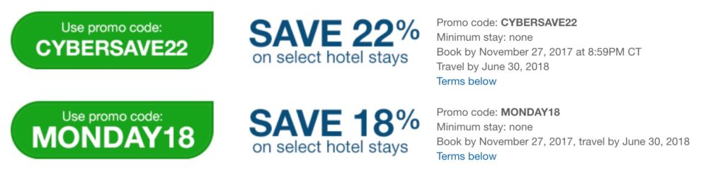 You can still get 22% off at Orbitz hotels for another hour or so with promo code CYBERSAVE22 – after that it’s MONDAY18 for 18% off