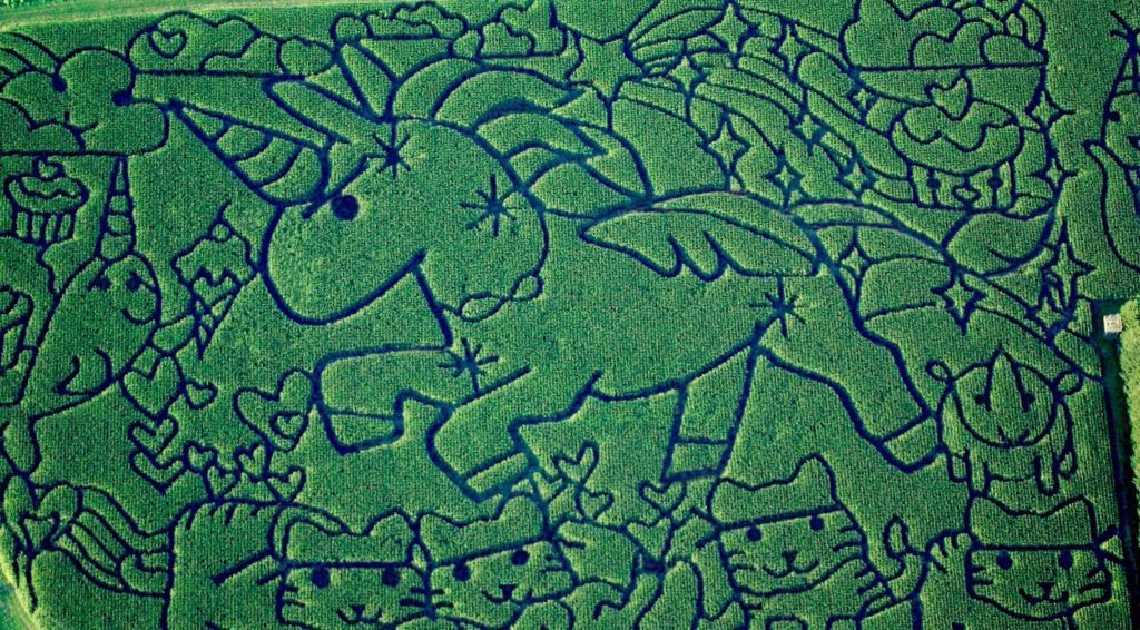 Picking the best corn mazes can be a challenging task, since there’s no one thing that separates a top corn maze from another. What one person might consider the best corn maze may be frustrating or uninspiring to another visitor. Some people enjoy the challenge of solving a large or difficult corn maze – other people get lost and call 911! 😀