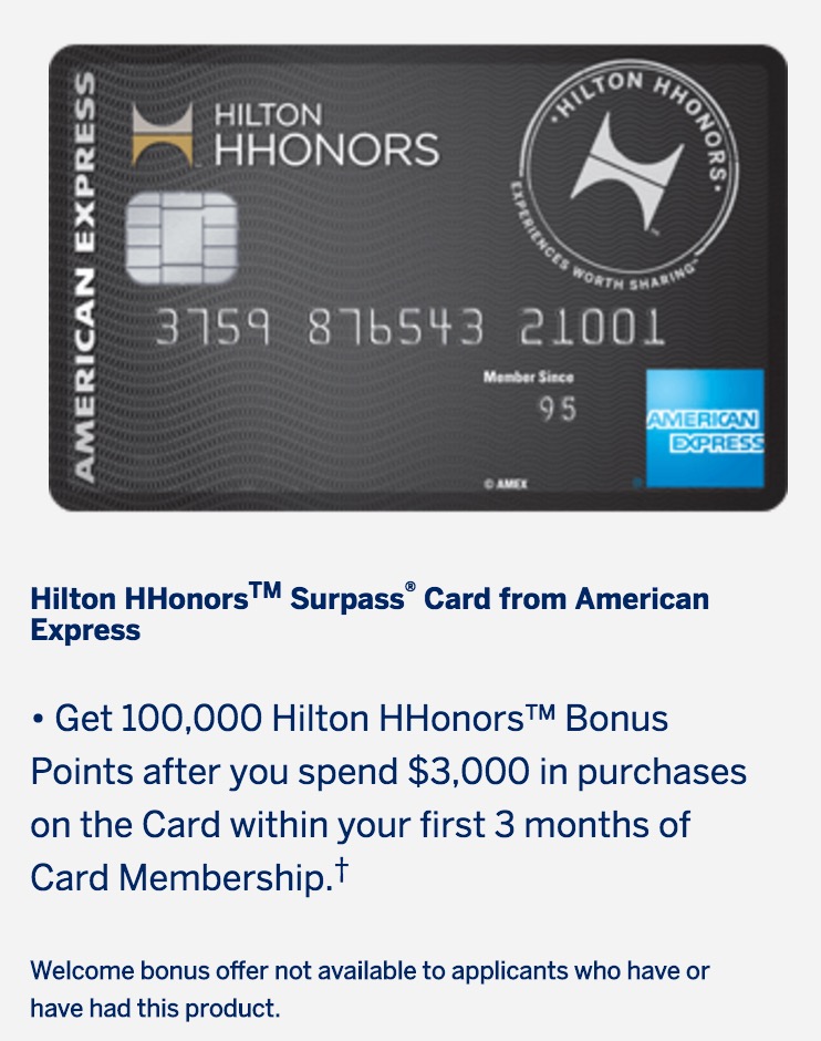 Remember that according to the current rules and best practices of churning, bonuses on American Express cards are limited to 1 per person, so if you’ve ever gotten a bonus on the Hilton Surpass card, you won’t be eligible this time