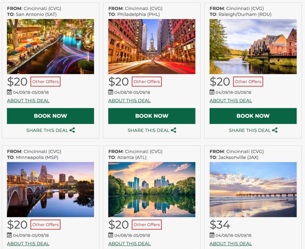 In addition – there are a variety of other city pairs with cheap flights. Here is a sampling from my hometown of Cincinnati (CVG)