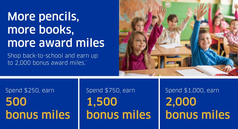 - 2,000 bonus miles for qualifying purchases of $1,000 or more