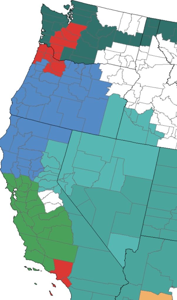 • September – My son left home to serve a two-year church mission in Portland, Oregon, and he and I flew out there to drop him off. Thankfully the West Coast had stopped being on fire. While there, I took a few days to road trip by myself and visited 38 new counties, my only new counties of 2020. That (visiting at least 1 new county) is something I have done every year for the past 23 years. You can see the area I visited in medium blue, along with that annoying white hole in California that was supposed to be plugged up by our Yosemite trip