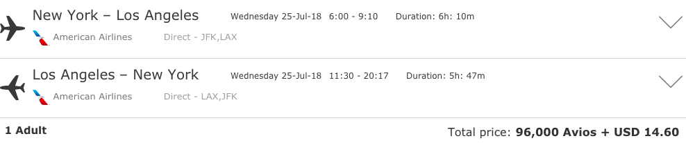 If flying first class on American Airlines’ transcontinental route is your thing, the roundtrip flight would cost 96,000 Avios plus $14.60. Considering I paid about $270 for 90,000 Avios, that is a pretty sweet deal!