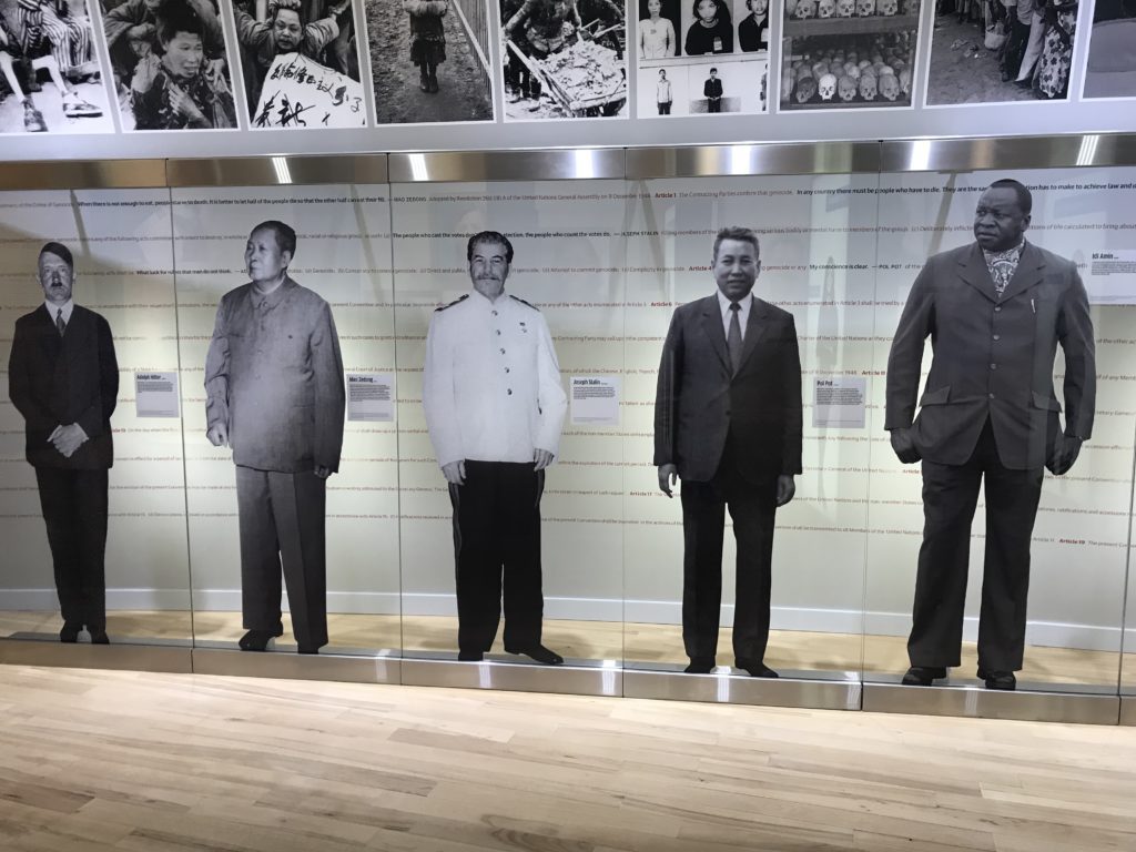 While we enjoy a relatively high level of equality and freedom in the United States, something that I sometimes forget. I take the enjoyment of free speech, free movement and ability to pursue my dreams for granted so much of the time. But so many people around the globe lack these same freedoms. This panel of some of the most evil men of the past century reminded me how quickly freedom can be lost.