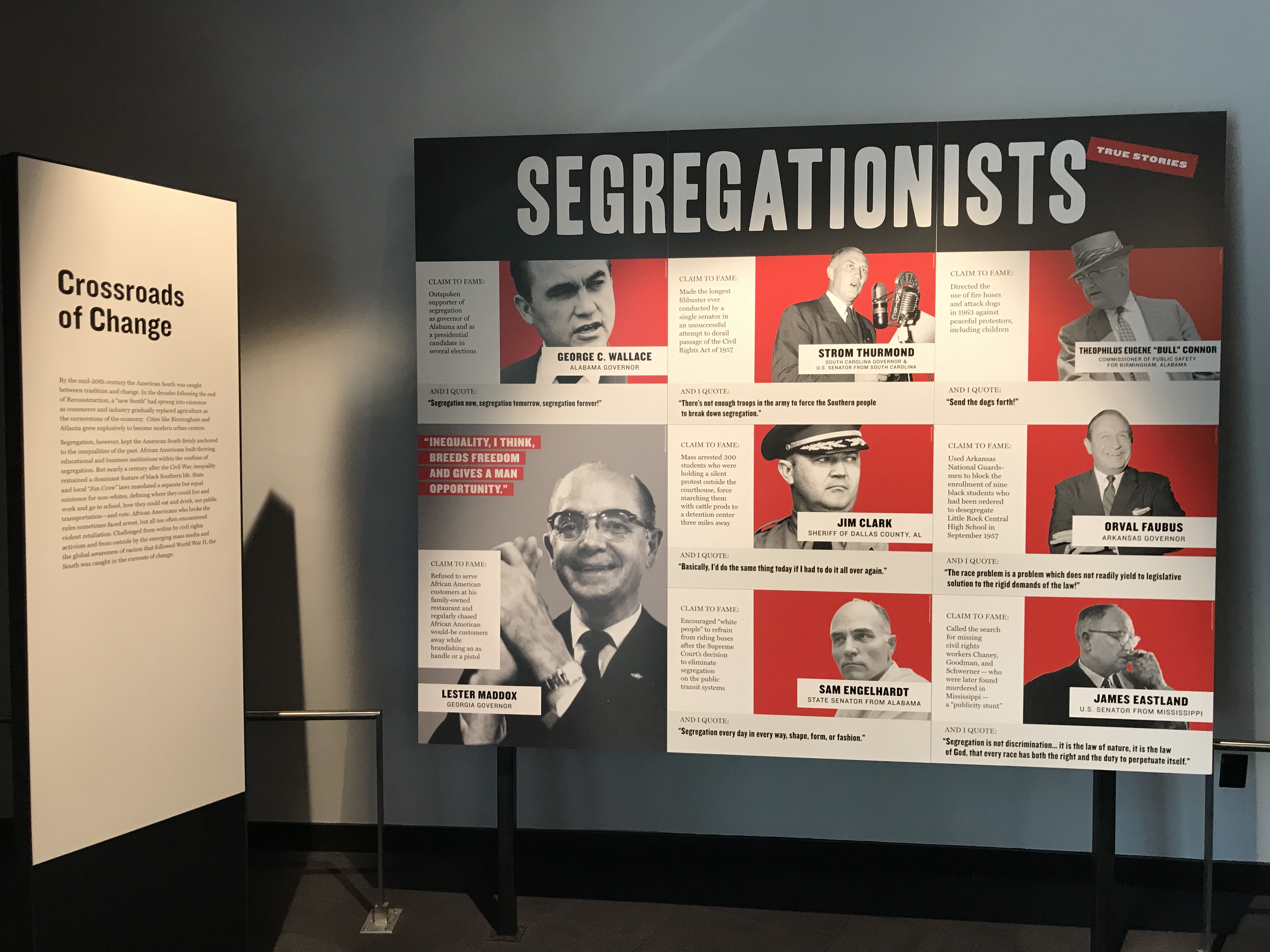 The Center for Civil and Human Rights gives you the opportunity to reflect on those . The odd quote by Lester Maddox on the panel of segregationists really struck me: