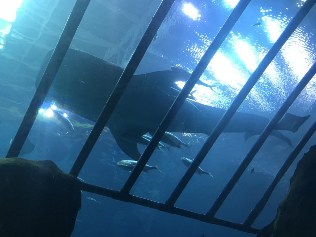 The primary tank also contains the largest of the fish species you can see while at the Georgia Aquarium: the whale sharks. My kids and I have watched shark videos on multiple occasions, and this species is the largest among their shark brethren, and also the largest of all fish species. Uniquely, they are filter feeders, having none of the sharp triangular teeth their more (in)famous Great White cousins possess.