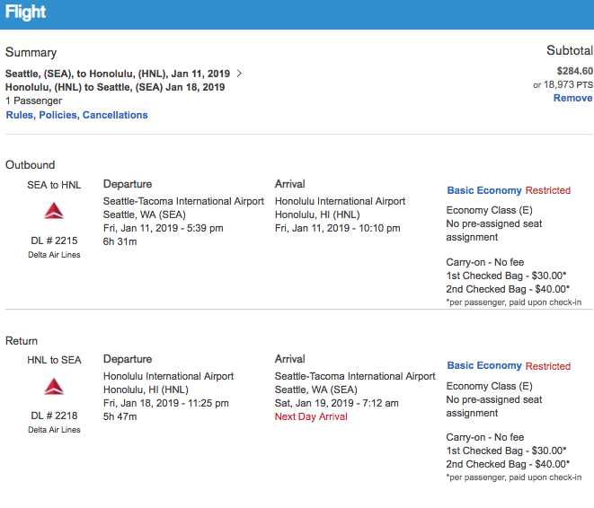 Seattle to Honolulu from $285 RT or 19K Ultimate Rewards