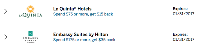 Four Amex Offers are expiring in one week before or on January 31, 2017. Some of these may be targeted, and some may have reached their capacity by now, but it makes sense to check your Amex accounts.