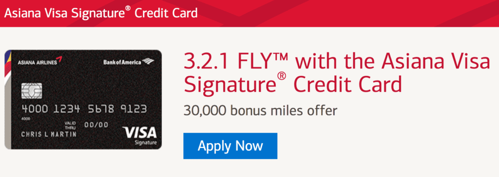 I’ve rarely seen this card given any press. Asiana’s Visa card is issued by Bank of America and currently offers a bonus of 30,000 miles after $3,000 in spending within 90 days. The bonus is decent, but nothing to write home about.
