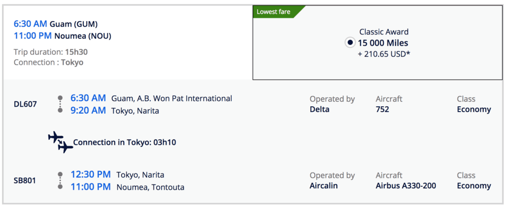 Unfortunately, DL is cutting their GUM-NRT flights, so the 15,000 mile one-stop redemption to New Caledonia will be going away 🙁