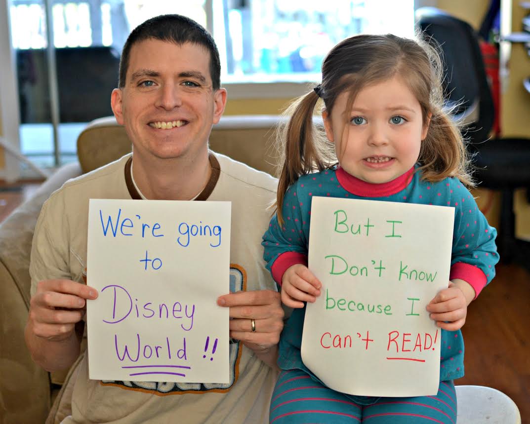 The plan was for me to come home from work, we’d tell the kids and then be out the door in 30 minutes. Â Check out the video of how long my daughter screams after she finds out she’s going to Disney World.