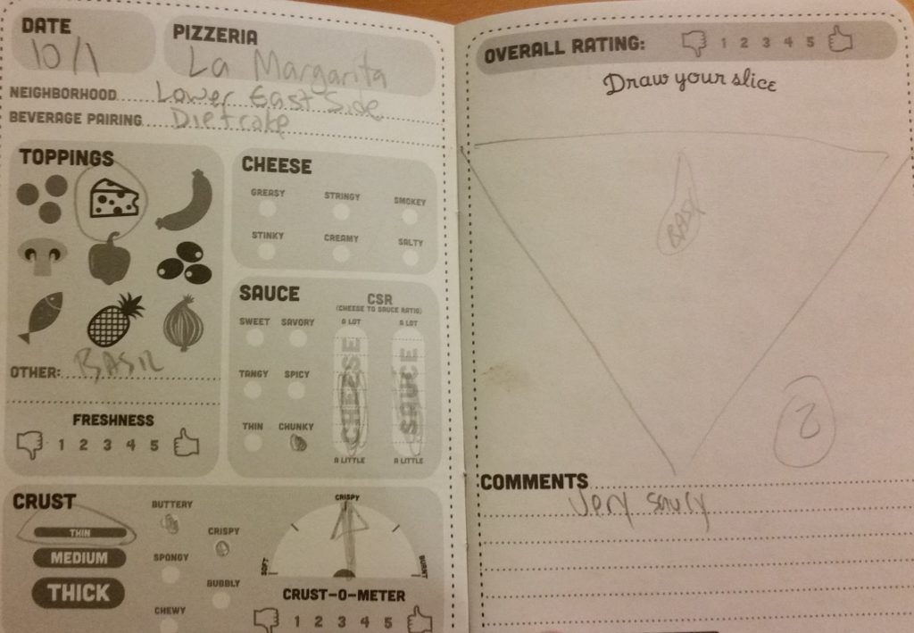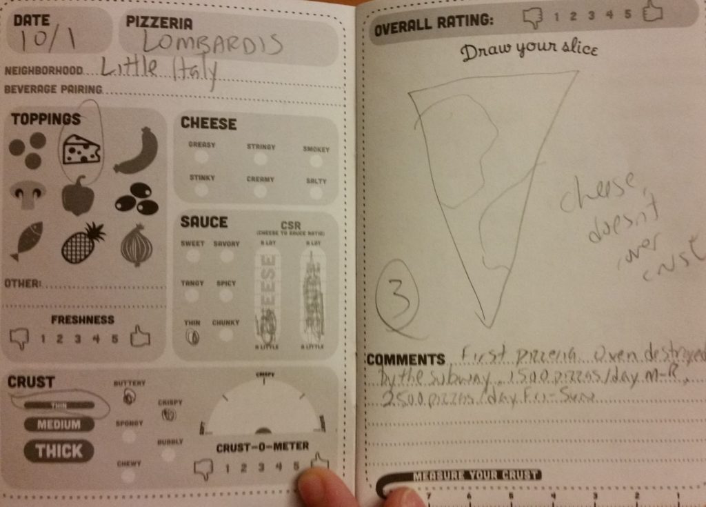 Here were my notes on the first pizza in my Scott’s pizza tour pizza journal