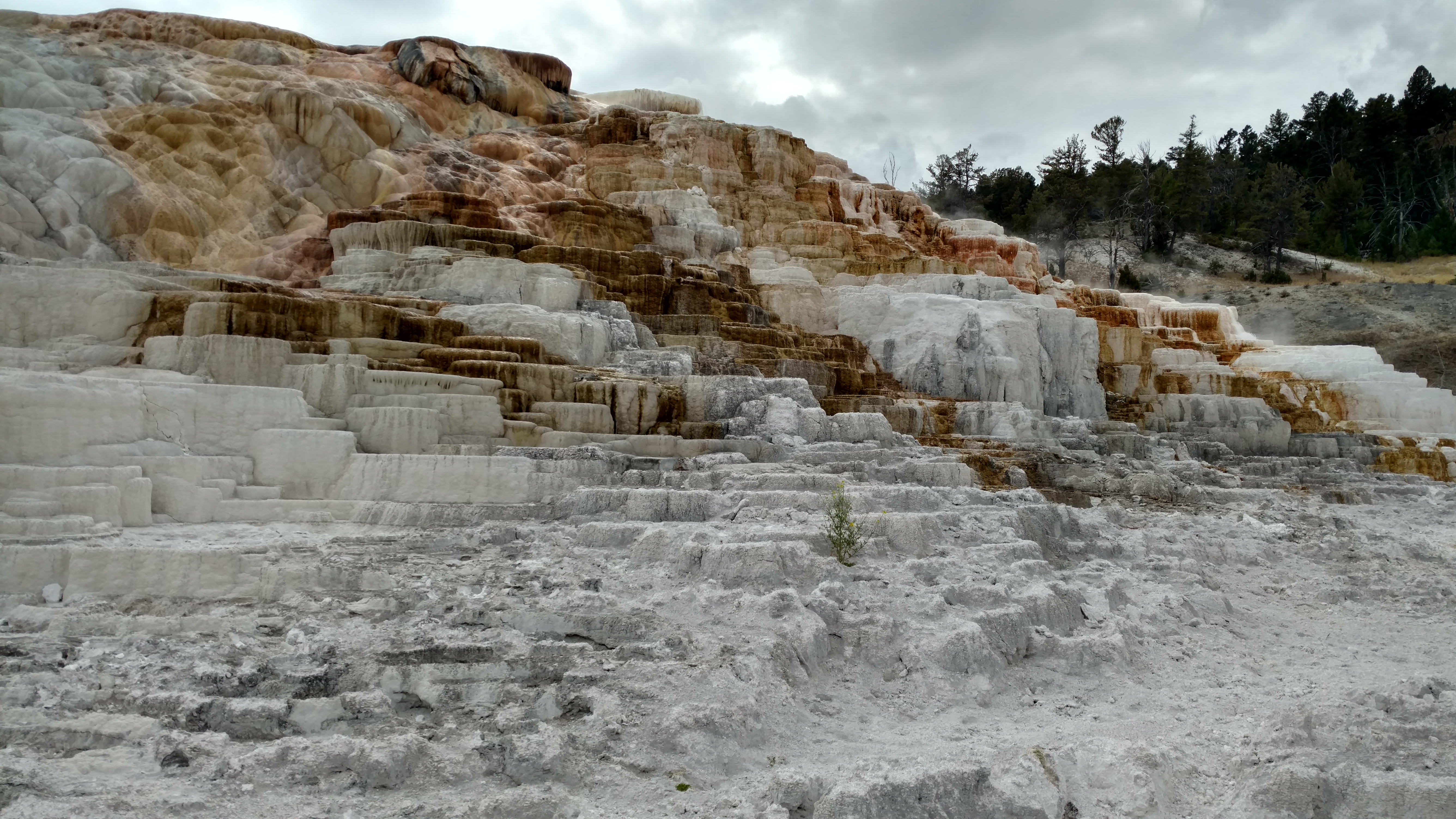 Get out of the car, stretch your legs, take in the scenery! There are tons of scenic overlooks that are truly, breathtakingly beautiful. Most of them have walking paths, or at least enough room in the parking lot to stretch your legs. The major attractions usually have large parking lots, developed amenities, and maintained boardwalks. Think Old Faithful, the Great Prismatic Spring, and Mammoth Springs. All of these offer an opportunity to get out of the car, walk around a bit, and take in the wonders of Yellowstone.