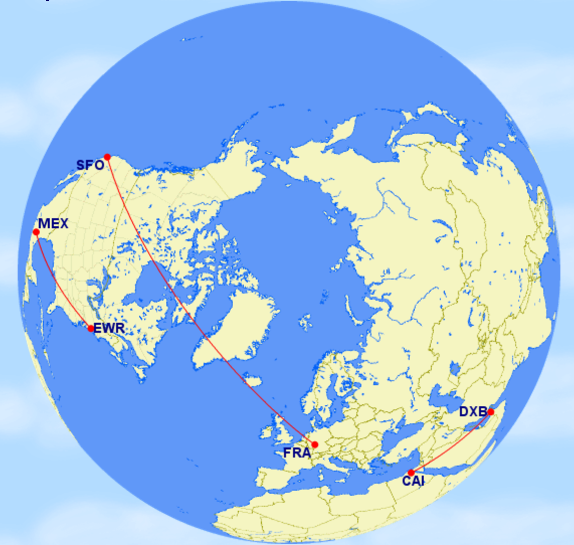 This is an entirely open jaw itinerary. You’d have to get yourself from Frankfurt to Cairo to fly the middle segment, and then back to South America to fly the return.