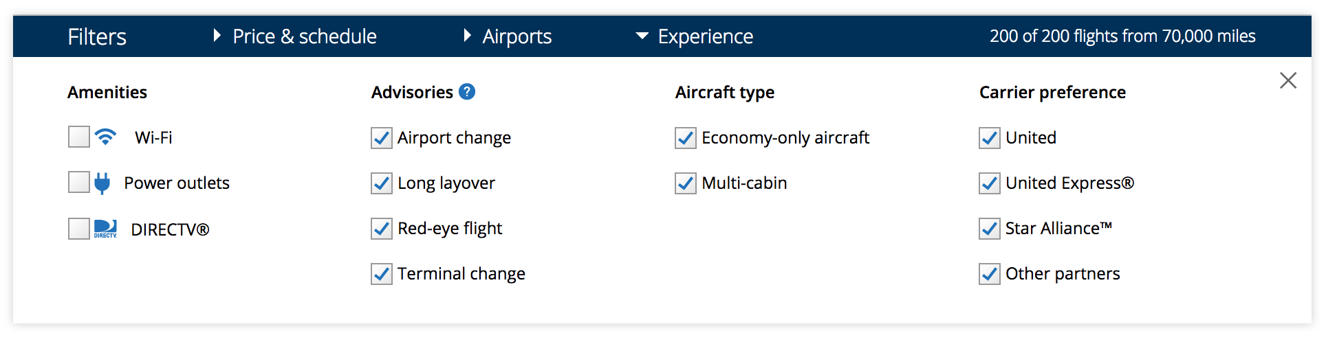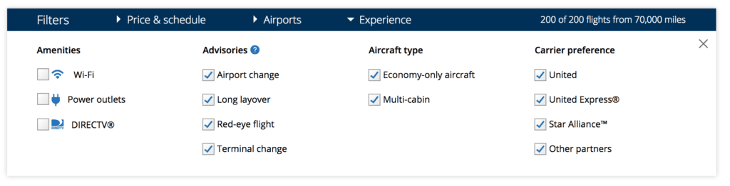 As you might guess, finding an ideal flight among the plethora of options can be a tad difficult at times. The filters at the bottom of the search results can help you weed out options you don’t want. You can filter out undesirable connection airports, change the type of award, adjust the departure and arrival times to what works best, and even filter by aircraft amenities and type of connection.