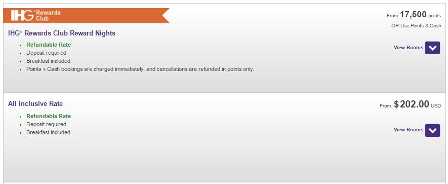 That’s 1.15 cents per point, which is a pretty good redemption for an IHG point.  If you look back at the Daily Getaways from two weeks ago, you could buy 75,000 points (enough for 4 nights) for $443, compared to paying $808!  You can actually get it a bit cheaper as you can manufacture IHG points as low as 0.6 cents per point, which would count those 75,000 points for as low as $420.