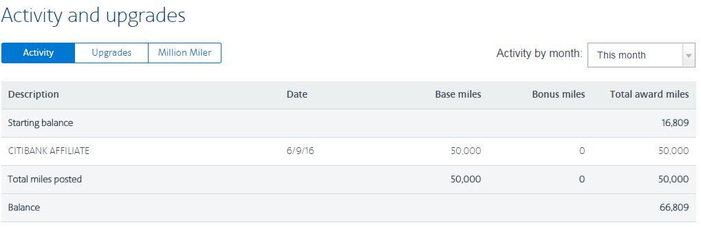 But sure enough, today while updating Award Wallet, I noticed that my 50,000 miles had (finally!) posted!