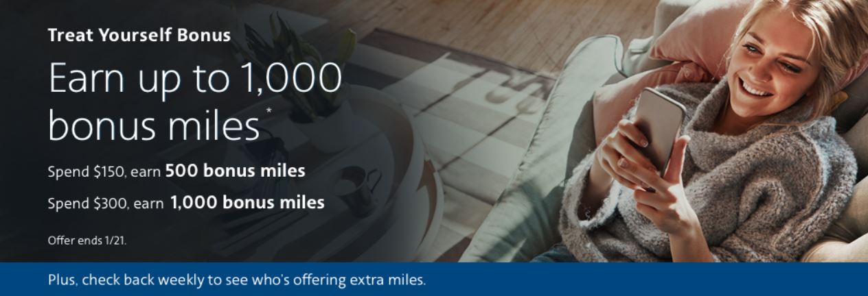 - Spend $300 through the portal by January 21st, earn 1,00 extra miles