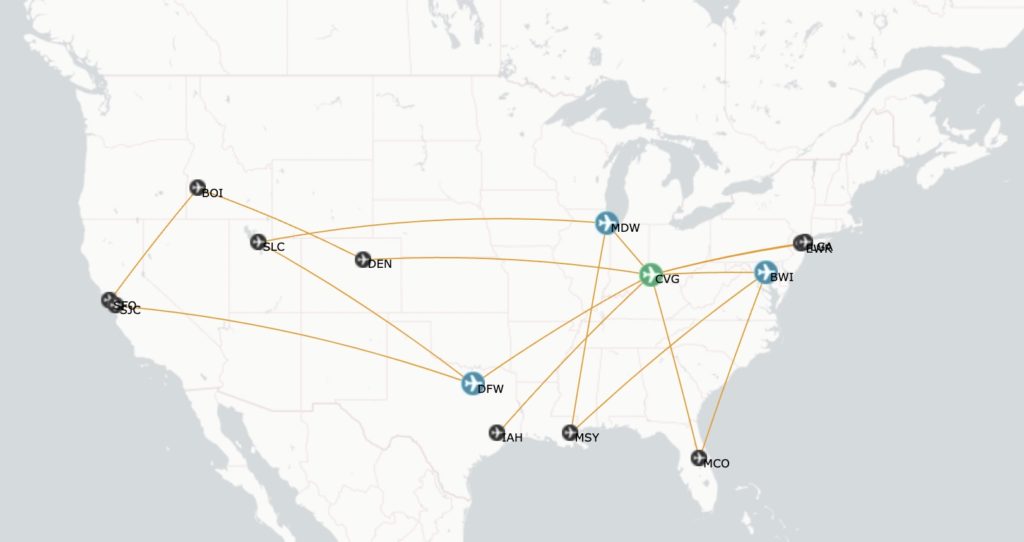 Here is my airline flight map for 2022, courtesy of Open Flights – only 20 segments and 15,149 miles