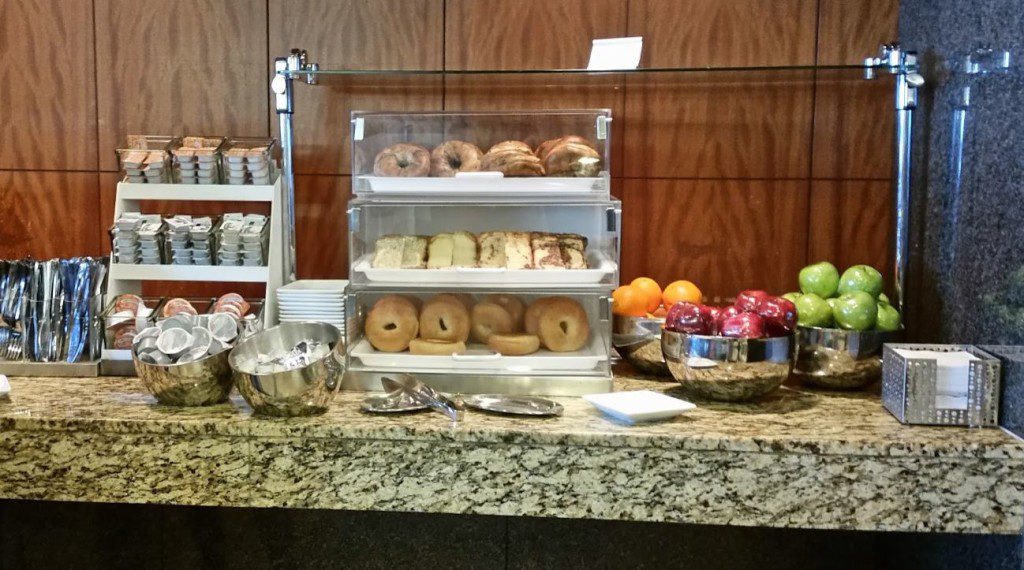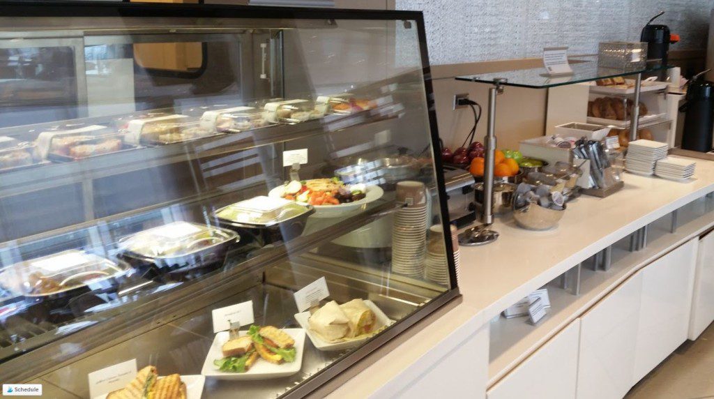 The Admirals Club hours for this AA Admirals Club is from 4 a.m. to 10 p.m. When we first arrived, the agents were very confused and told us that based on our class of service (flying first class to Japan) we should go to the AA flagship lounge. When we explained that we had already been there and were just exploring the different AA Admirals Club locations in Chicago airport, there was no problem admitting us. When we got into the Admirals Club, were there at the American Airlines Admirals Club, they had a variety of breakfast foods out