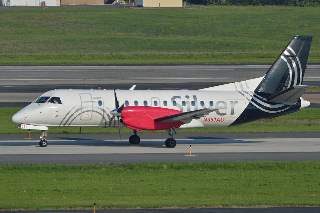 A Silver Airways Saab 340B. Image courtesy of Alan Wilson via Wikimedia Commons.