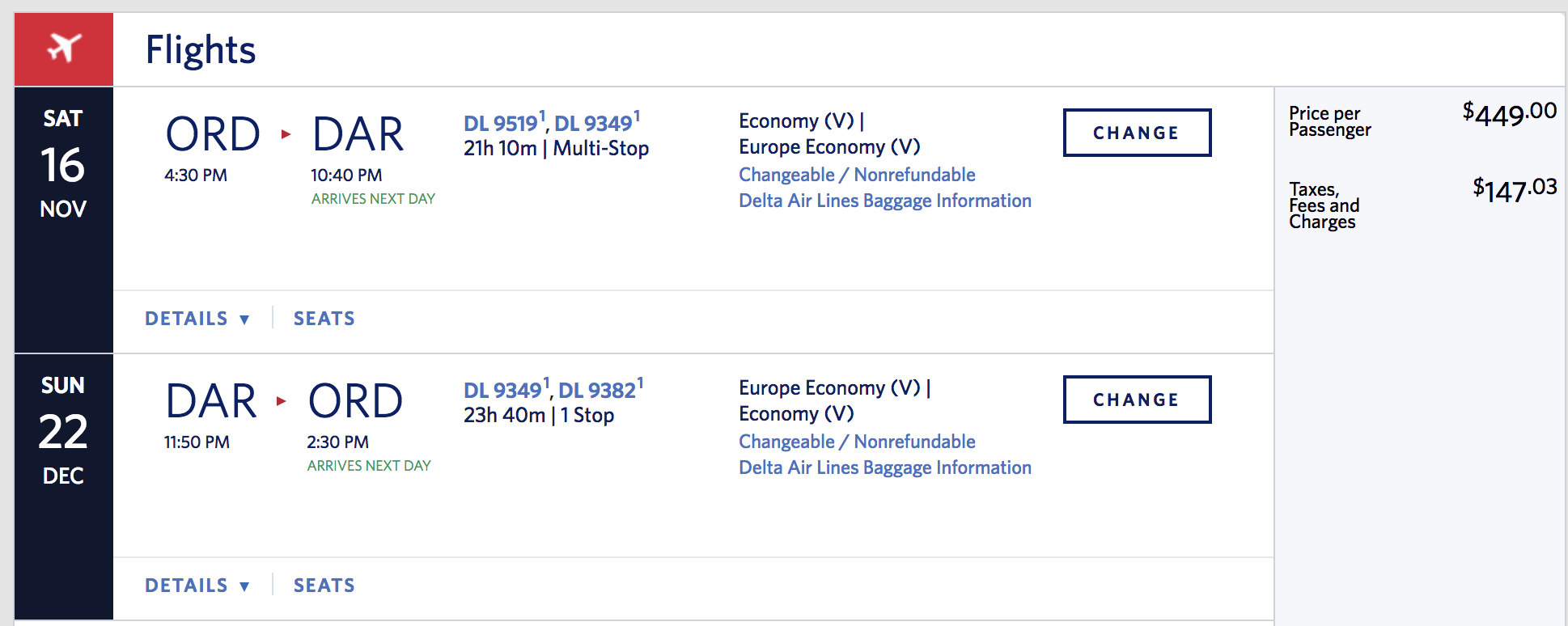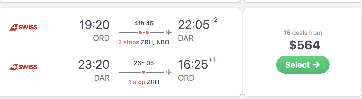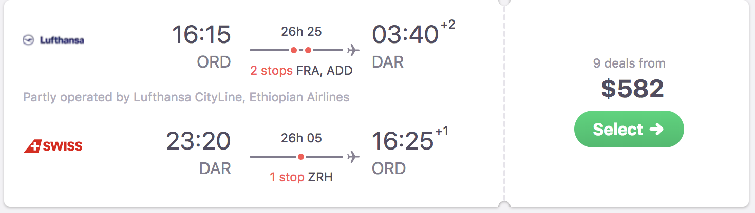 I’m not one to sensationalize fare deals, but US-Africa for less than $600 is awesome. Right now, you can book Chicago to Dar Es Salaam, Tanzania on multiple airlines with wide availability.