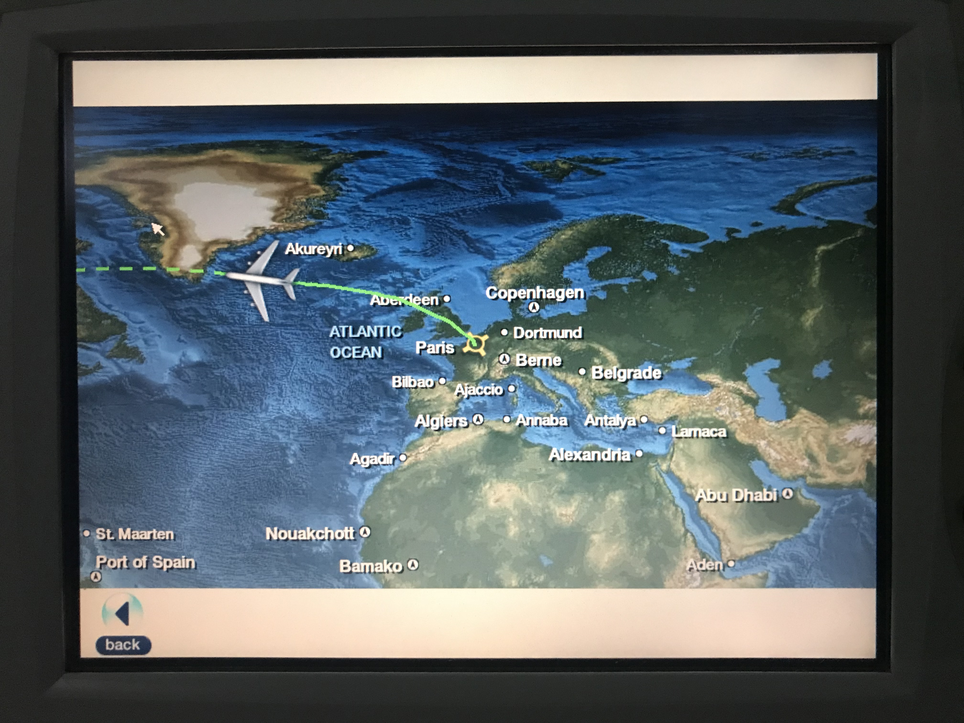 Thus, we had to wait in line to speak with an Air France employee. He was a bit gruff, but after explaining our situation, he handed back a bag tag and a new boarding pass for me that seated me next to my kids. I figured he’d stick us all in 50ABC, which was near where I was checked in. But I ended up in 20F instead, next to the kids original seats and much closer to the front of the plane. How he’d managed thsat was beyond me, but I was happy.