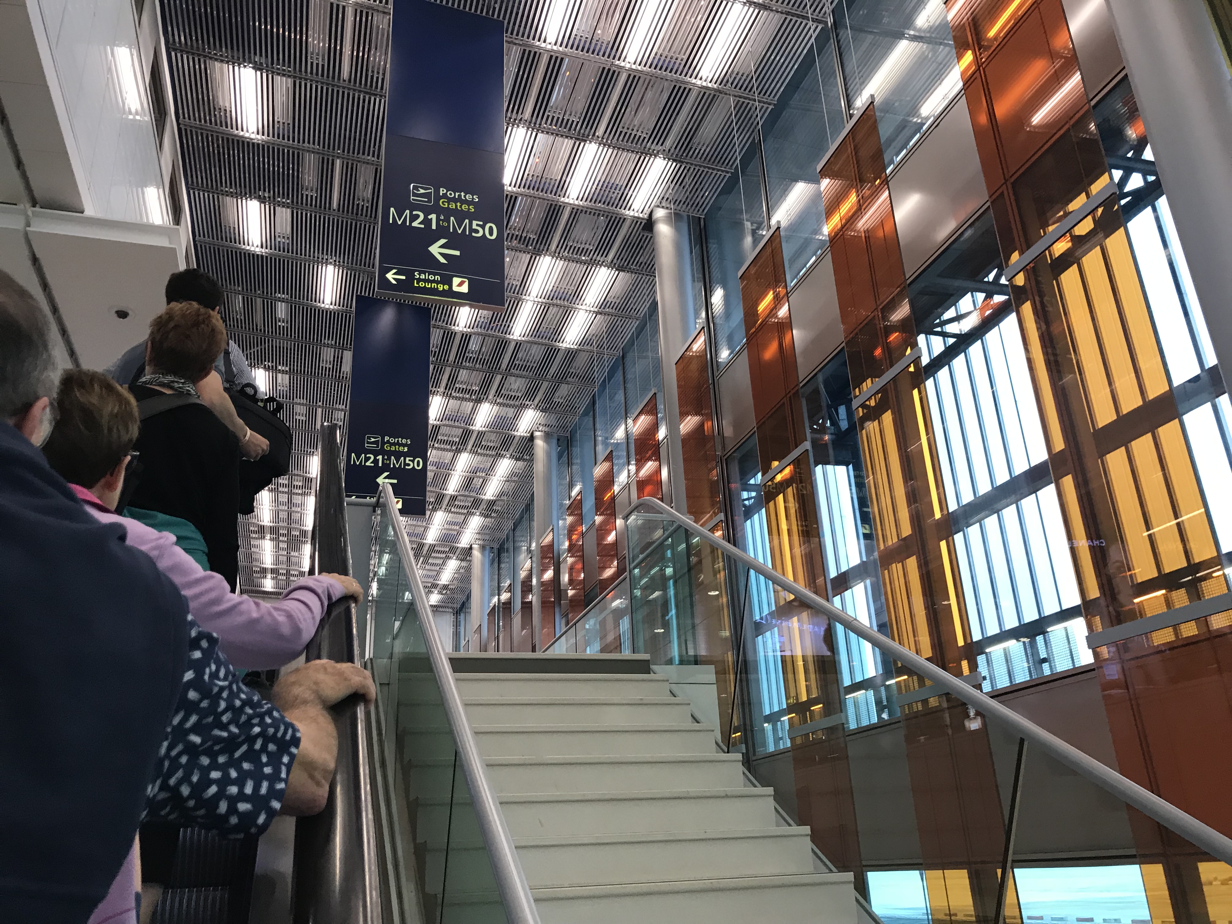 From there we took *another* train to the M gates. I’m beginning to think I could actually get lost at Charles de Gaulle airport. It’s massive. Not sure I’d want to connect here with less than 2-3 hours of scheduled time.