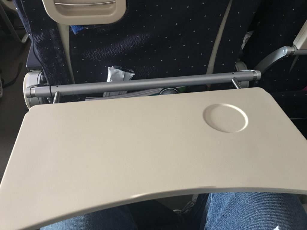 One feature that was a first for me is the separate drink holder on the underside of the tray table. It would be nice if more carriers add this to their seat design. There have been many times on other flights where I’d like to fold a tray table up, yet still wish to hold onto my drink.