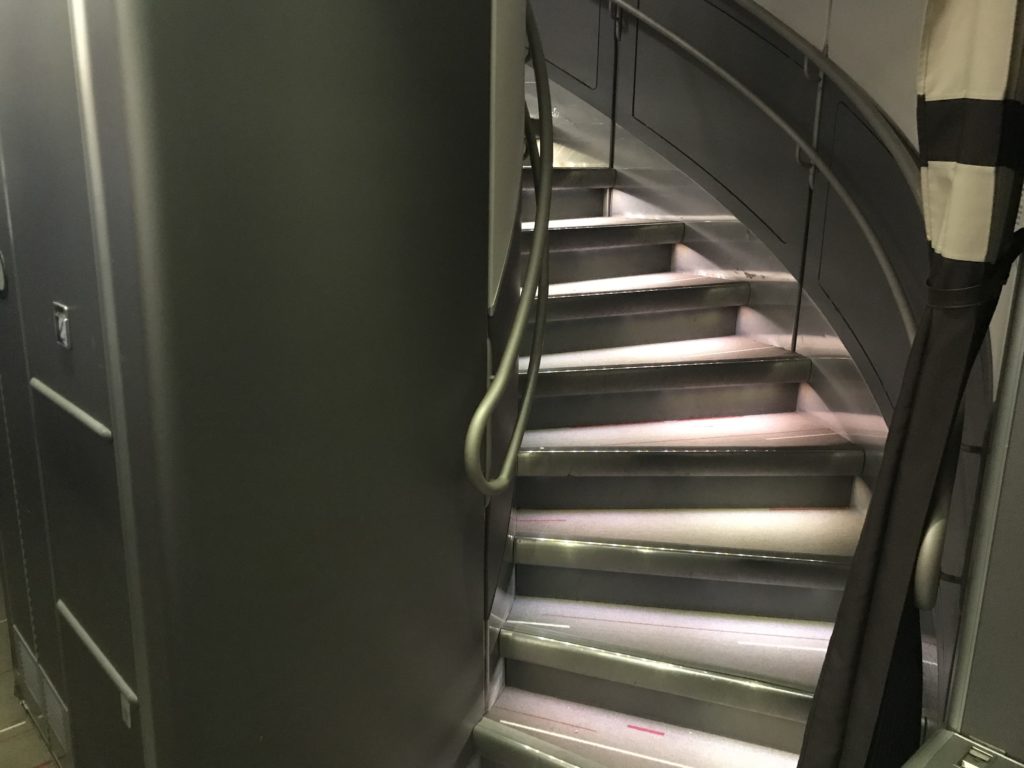 During the middle of the flight I decided to take a walk. At least as much of a walk as you can get on a plane. I eventually made it to the back staircase and poked my head up into the cabin above.