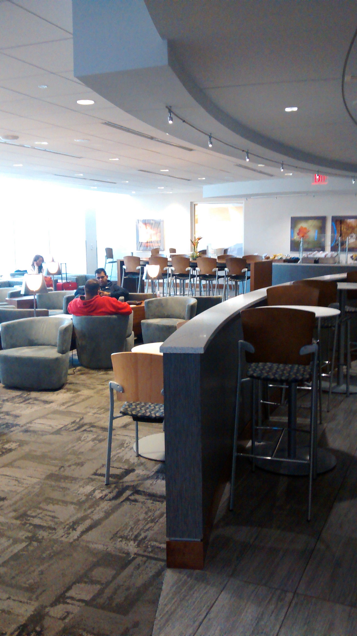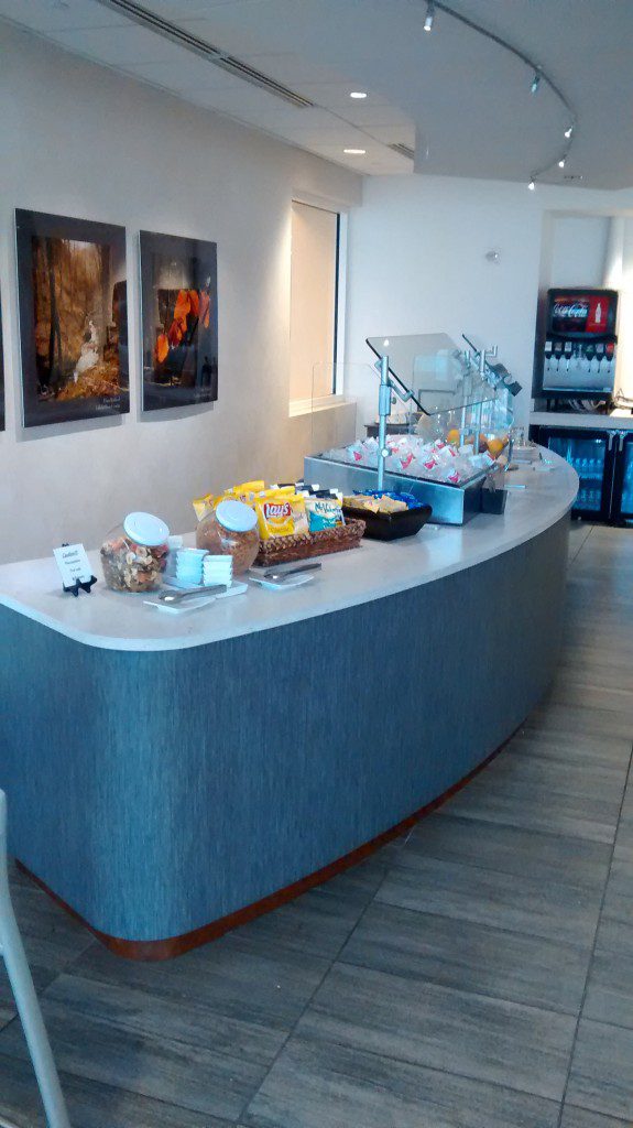 Having never been in an airport lounge before, I was not sure what to expect. It was an open room and there was plenty of seating. Early on a Sunday morning, there were not very many people in there.