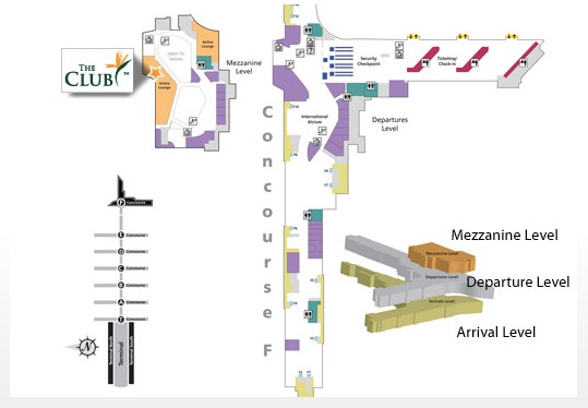 Once you get off the Plane Train and go up in to Terminal F – all of the lounges are right ahead of you in the mezzanine. The Club is straight ahead of you – you just go right up the escalators