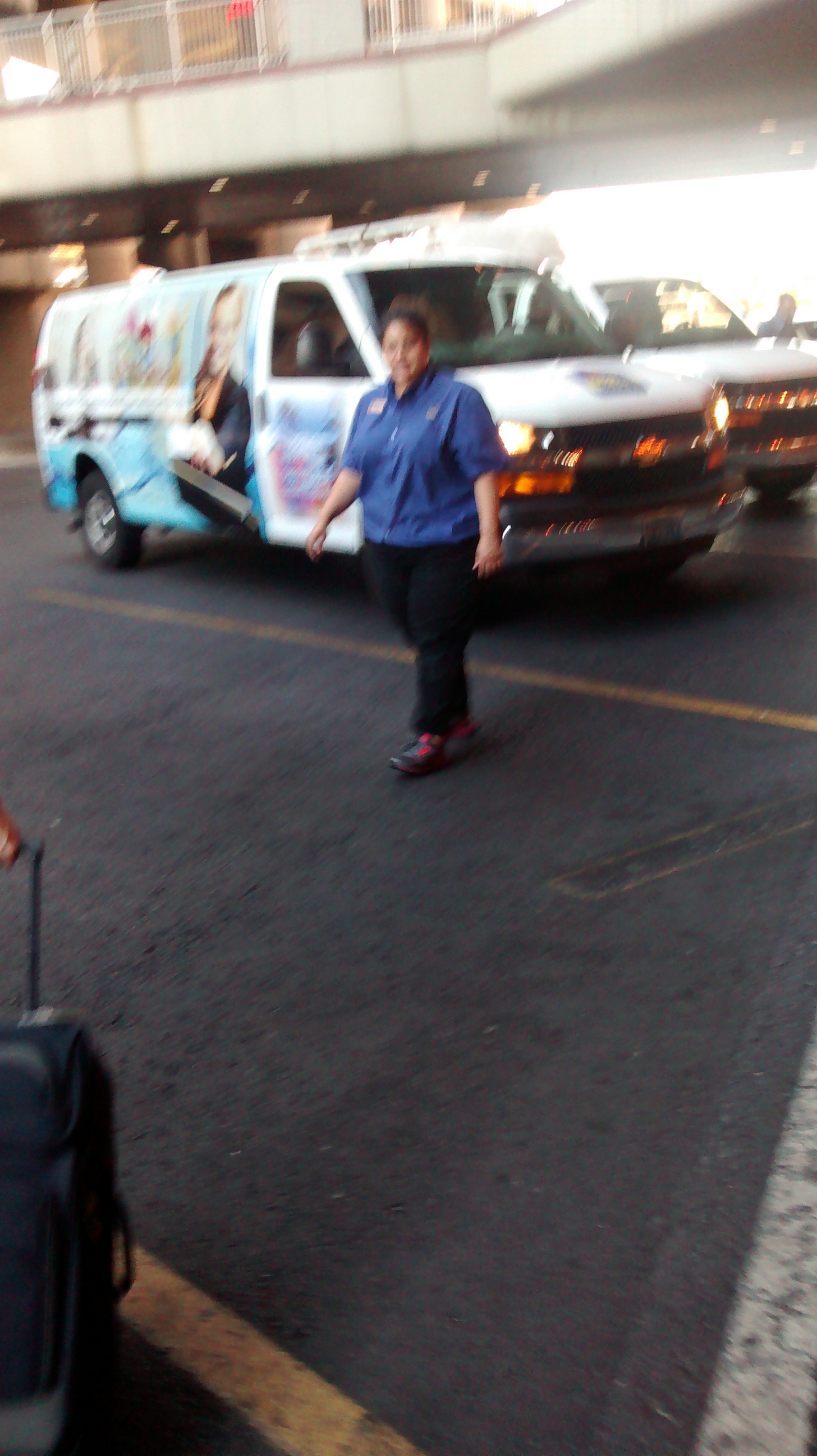 - First call – 4:45 p.m. After being transferred around twice, I finally talk to Luis (?) at the front desk. He asks me what airline I flew in on, and I try to tell him that I’m over in the D Concourse and not where I flew in on. He says “That doesn’t mean anything to me”. Since I was not really familiar with the airport map, I didn’t know how to explain to him where I was and frankly, he didn’t really seem interested. Finally I told him that I flew in on Southwest since I didn’t know what to say, and he gave me instructions on where to meet the next shuttle, which he said was at 5pm. I knew we’d have to hustle, so we quickly left the lounge. Outside the lounge, I felt like we needed to take the tram back to Terminal 1, since I felt like that’s where a passenger coming in on “Southwest” would be. We made our way down past baggage claim, then down ANOTHER escalator to “Level Zero”, and outside where all the other hotel courtesy shuttles were.