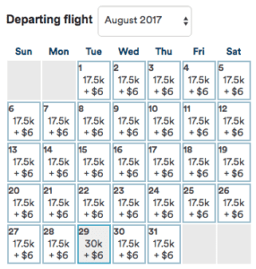 - Click on any date labelled 17.5k to see if nonstop flight is available.