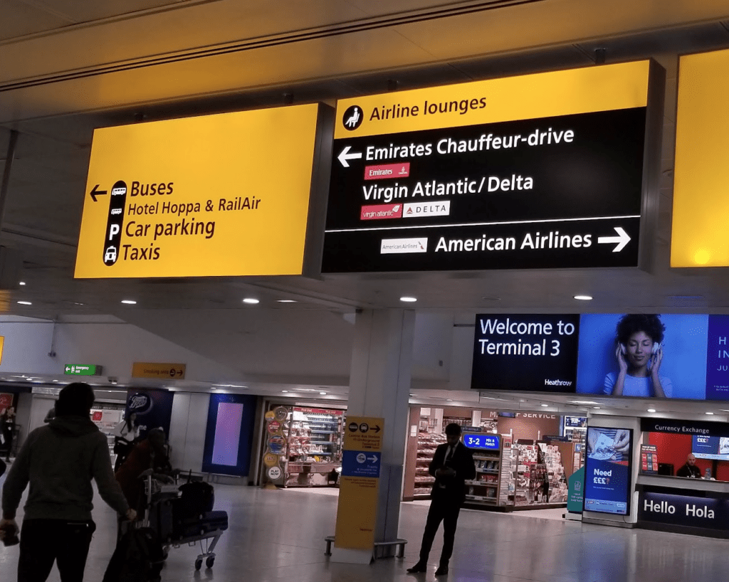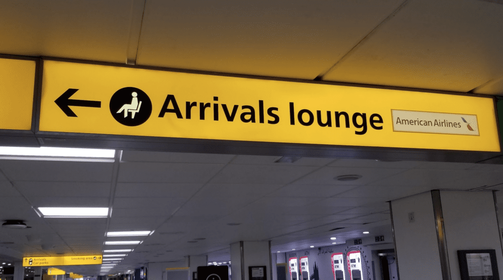 The American Airlines LHR / London Heathrow Arrivals airport lounge location is in Terminal 3, after going through immigration and customs. Once you enter the main terminal hall, you’ll see this sign
