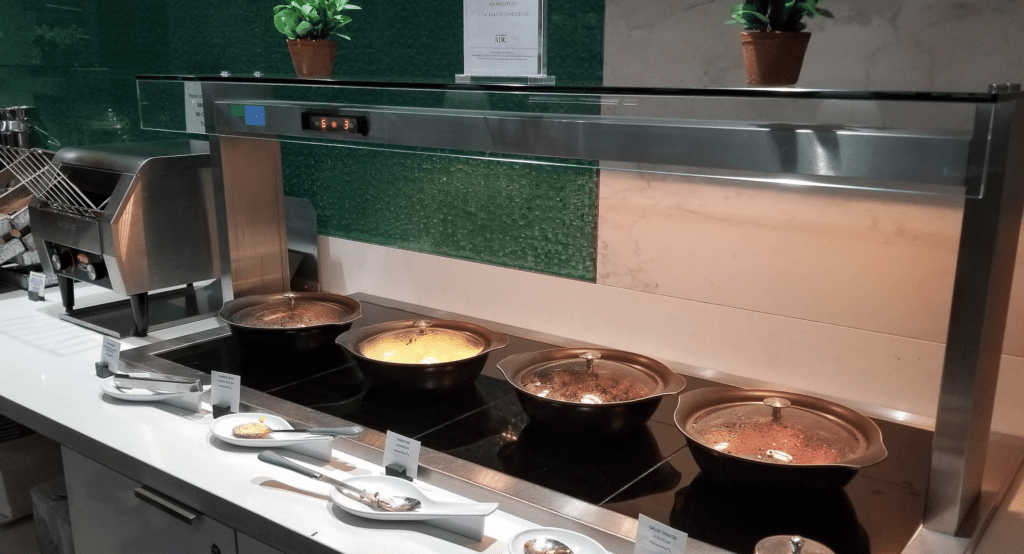 When I visited in early 2024, there was a simple buffet of food at the American Airlines LHR / London Heathrow Arrivals Lounge.