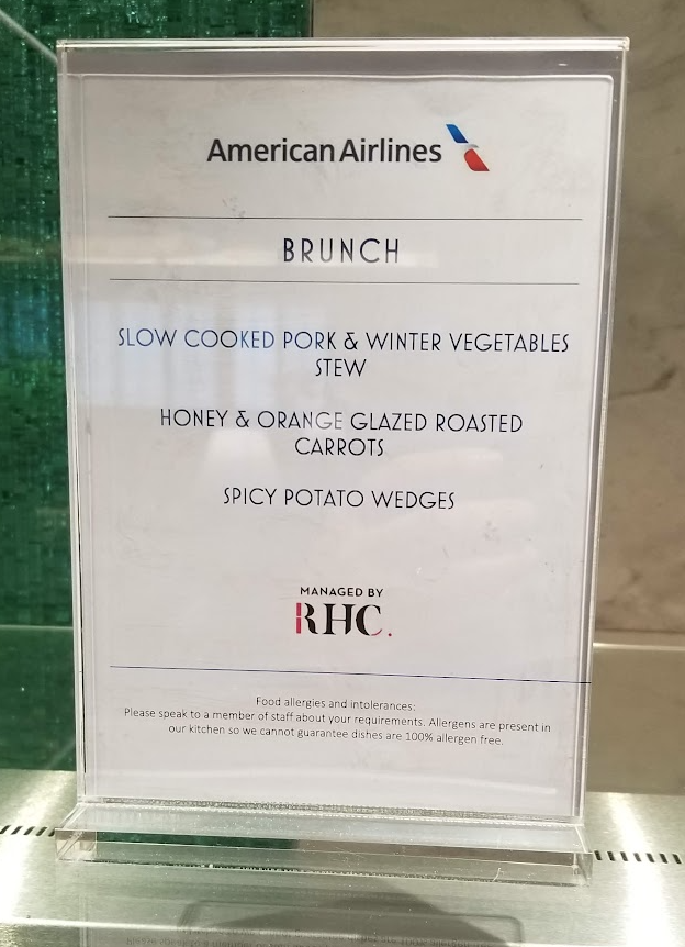 American Airlines LHR / London Heathrow Arrivals Lounge Review: food