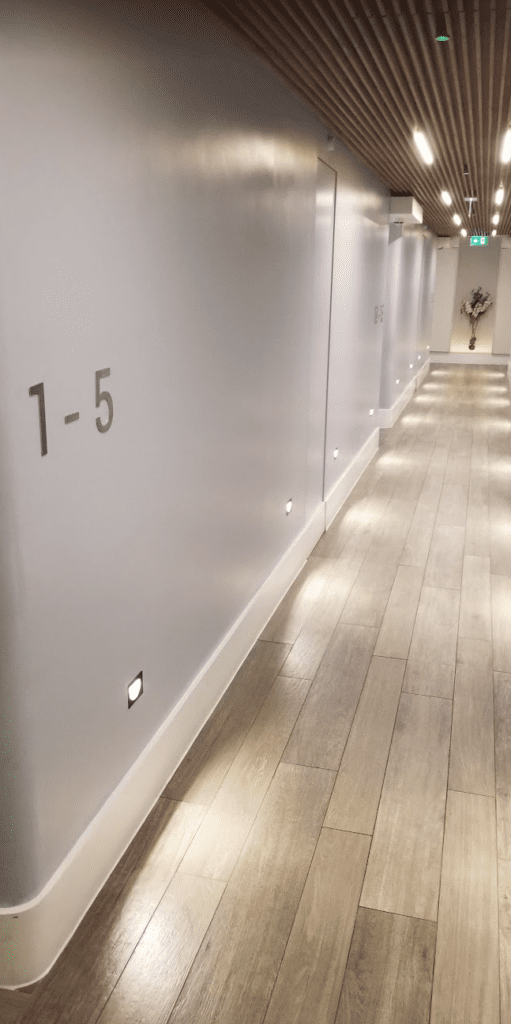 Follow the arrow to the right. You’ll see another sign, directing you to an elevator