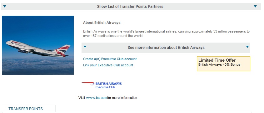 There is currently a bonus of 40% when transferring American Express Membership Rewards to British Airways Avios.