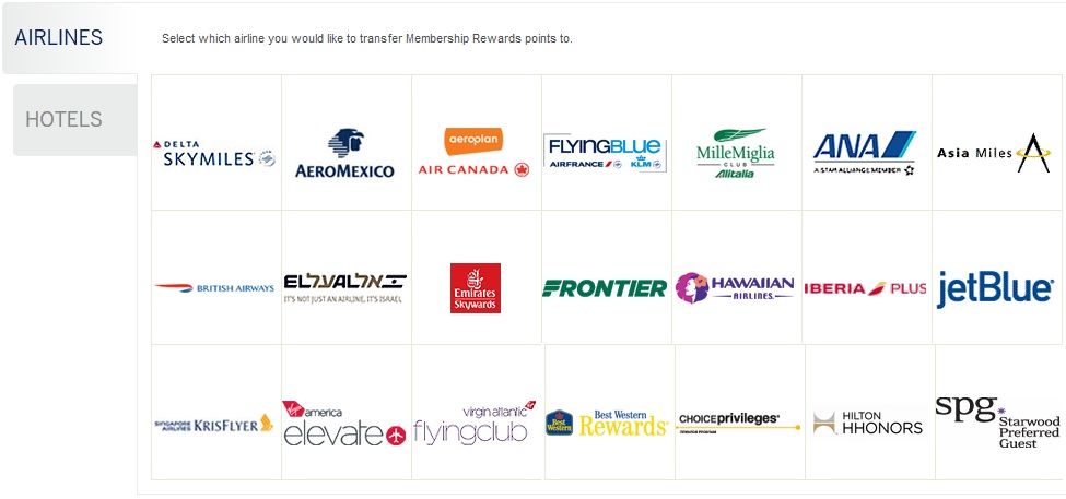 American Express Membership Rewards has a great list of transfer partners, where you can transfer your Membership Rewards to airline partners and hotel partners.