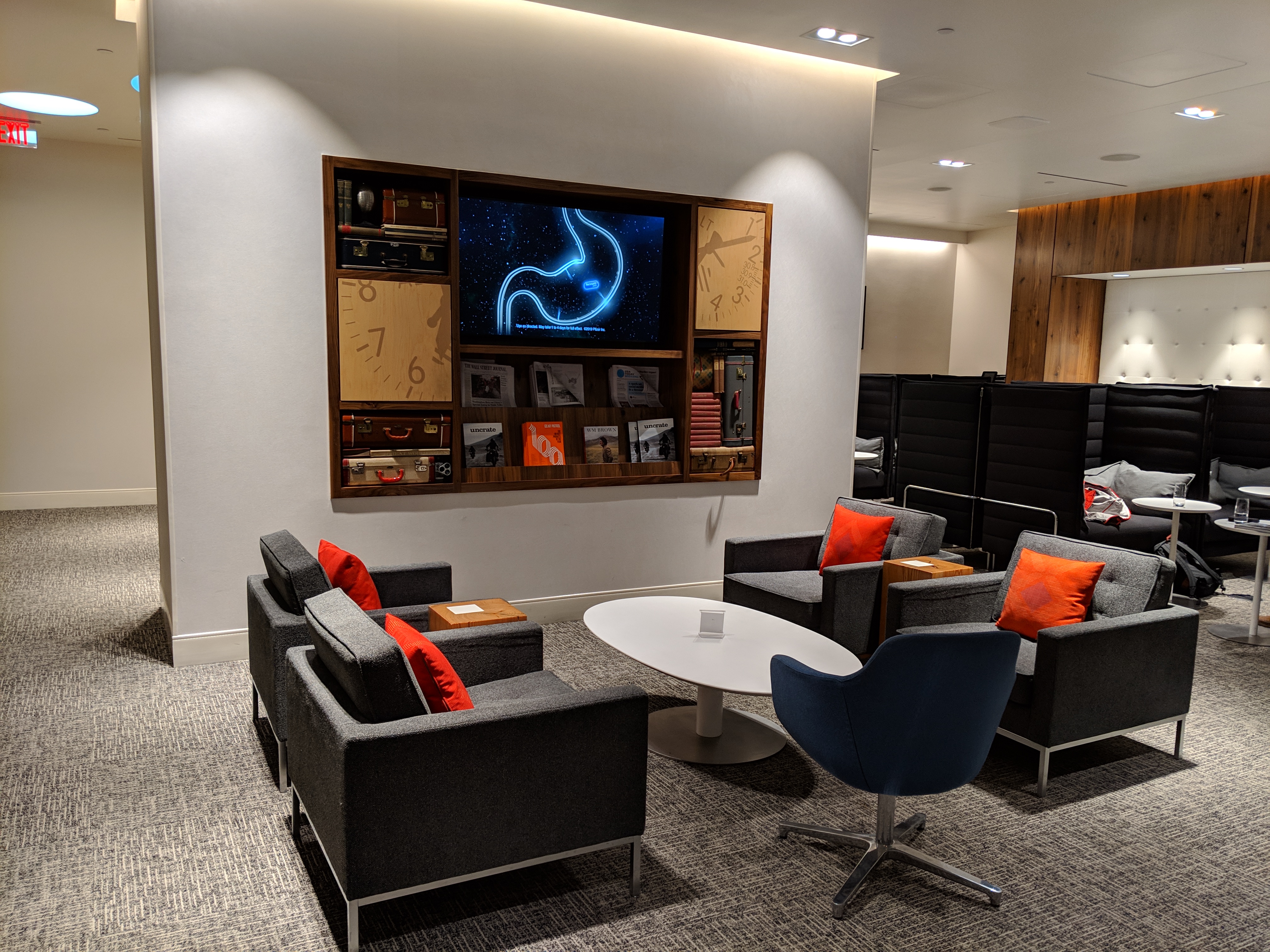 The lounge is fairly large, weighing in at 12,500 square feet after the renovations. American Express has used the space creatively, turning what is essentially a long, wide hallway, into a lounge with ample room for seating, showers, conference space, buffet, and bar. The only time it really feels cramped is passing by each other in the narrow walkways, otherwise the Centurion lounge is spacious! Well, it ws at 6AM at least…
