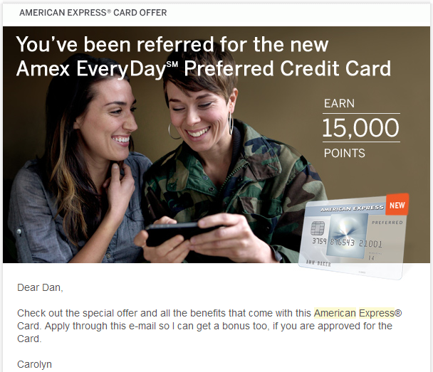 My wife has the Every Day Preferred card, and so I had her “Refer Now” to send a referral to me, which showed up in my inbox last Saturday