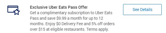 American Express has provided a complimentary Uber Eats Pass subscription to cardholders with the Platinum, Gold or Green Card for a few months now. This service typically costs $9.99 per month. The benefits of an Uber Eats Pass include a $0 delivery fee and 5% off orders over $15 at eligible restaurants. The subscription is for 12 months, so make sure to set a reminder to cancel if you don’t want it to continue down the line. Hopefully, this becomes an ongoing benefit for the Amex cards.