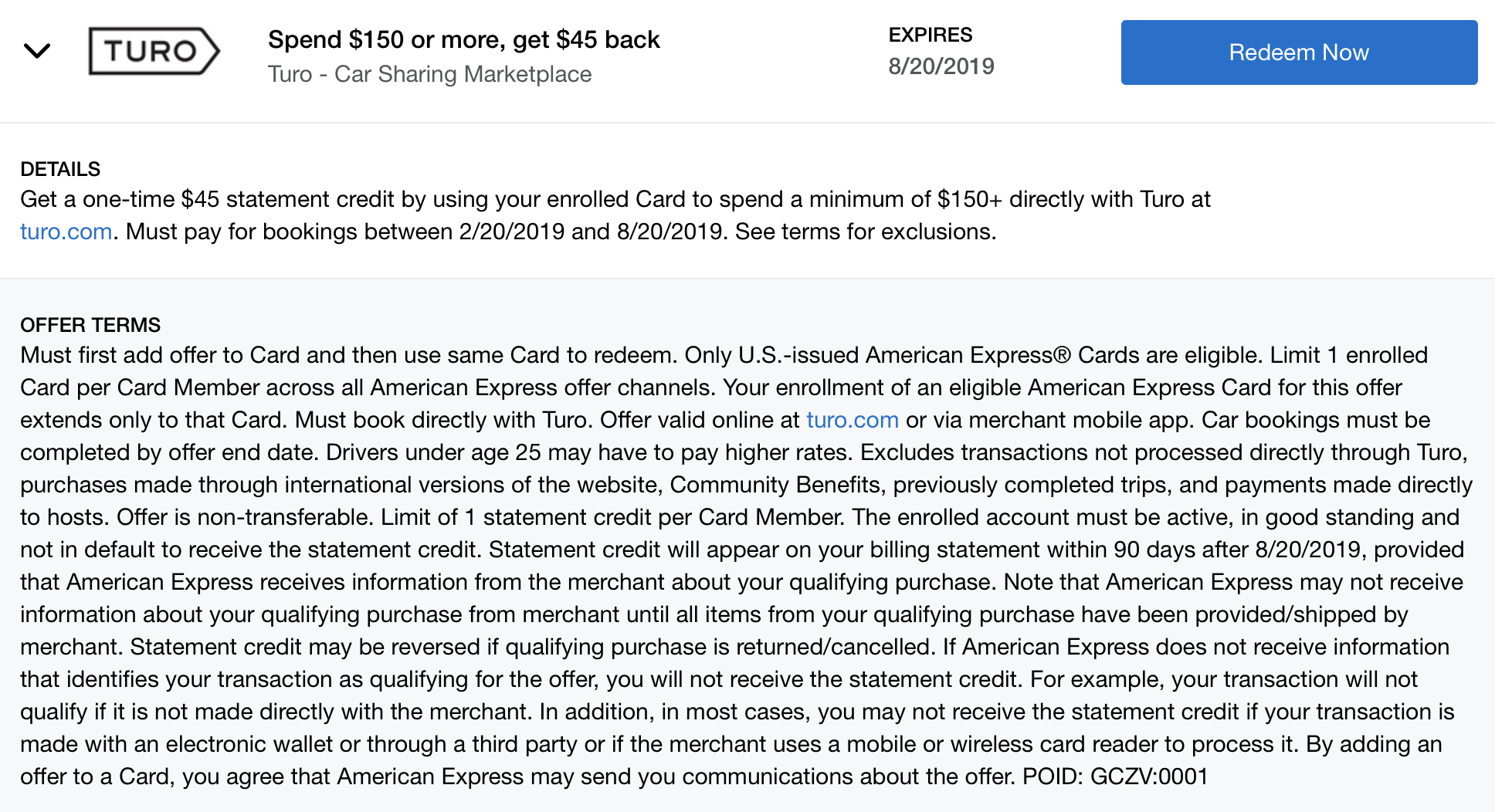 Bummer, none of my 4 cards have the Turo offer; I assume since I use them frequent, I wasn’t targeted.