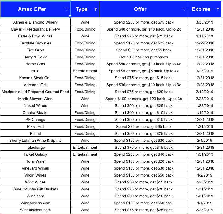 This latest entry is all about Amex Offers: Holiday Food/Dining, Wine, Entertainment Roundup.
