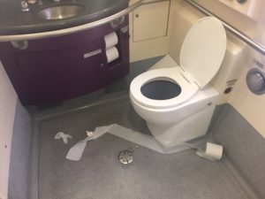 There is only one bathroom per car, and on my first visit it was clean, second visit it was dirty, and third visit it was clean again. Overall, a mixed bag; however, you can tell that they are a little past their prime.
