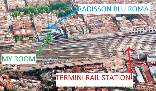 We got to the Radisson Blu Rome at around 9pm. The Terravision bus drops you off on the OTHER side of the Termini station, but we were able to walk through the station and then down the street to the hotel. We did have to ask someone for directions, but we also were able to use Osmand to navigate us there even though we didn’t have a wifi signal.